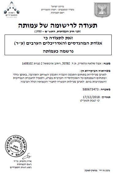 האגודה מהווה מסגרת מקצועית הכוללת קבוצת מהנדסים, הנדסאים ואנשי אקדמיה מתחום ההנדסה האזרחית והאדריכלית, המאוחדים בערכי הנתינה והשייכות למקצועם ולקהילתם הערבית הפלסטינית בישראל.